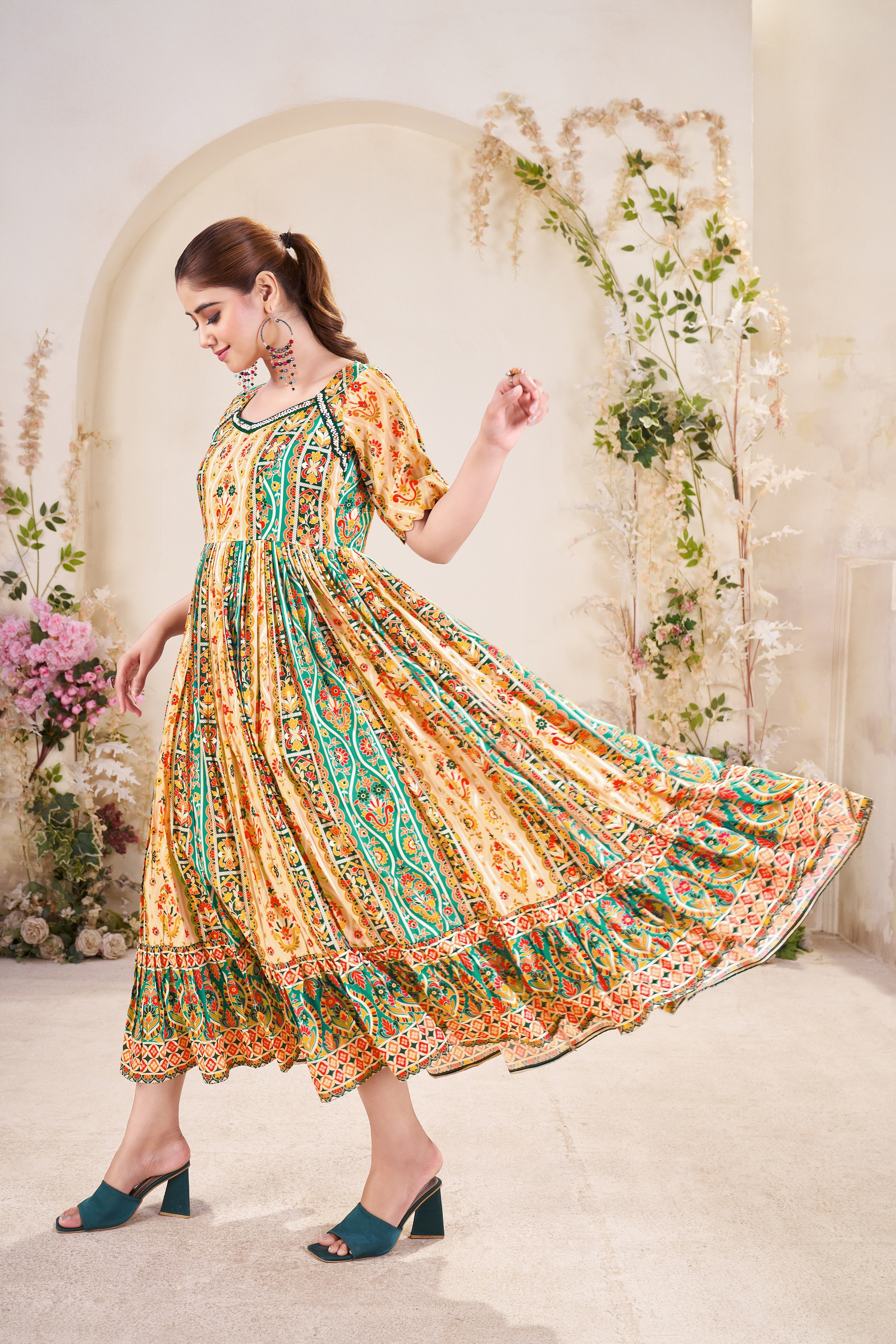 | Color: | A vibrant blend of sunshine yellow base with multicolor ethnic prints – giving a festive and cheerful vibe. |
